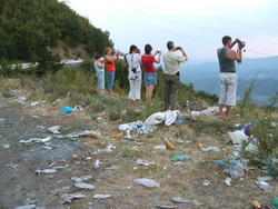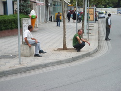 jo neizskatās, ka gaidītu autobusu. Līdzīgus tipiņus tikai ar svītrām uz treniņbiksēm, saulespuķēm un zīmīgo pozu var atrast portālā urlas.ru. Tas, ka apkārt daudz sadzīves atkritumu, te nevienu nemulsina. Viņi vēro, kā brauc mašīnas. Ilgi vēro! Daudz jaunceltņu. Dažs atvēzējies uz varenu privātmāju. Par kredītiem, naudas izcelsmi utt. man ziņu nav. Tik vien esmu novērojis, ka mašīnas ar albāņu numuriem uz robežām krata bezdievīgi, savukārt citu valstu numuru īpašniekiem novēl laimīgu ceļu. Varbūt muitnieki zina kaut ko tādu, ko nezinām mēs? Runā jau daudz ko...