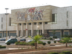 Uz centrālās ielas redzama dīvaina piramīda. Te līdzīgi kā faraonu bija paredzēts iebalzamēt vai izbāzt vadoni pēc nenovēršamā. Kad tautai pēc Hodžas nāves atļāva domāt, viņi beidzot saprata, kādu postu nodarījis paranoiskais vecis. Tad mūmija (līķis?) kaut kur pazuda. Hodža uzskatīja, ka pēc sava elka Staļina nāves ir palicis pasaulē vienīgais īstenais komunists. Hruščovs un Tito tika izbrāķēti, jo novirzījās no kursa. Kādu laiku cerības lika uz Ķīnu.