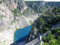 Ar vislielāko nepacietību gaidīju tikšanos ar Crveno jezero (Sarkanais ezers)un Modre jezero (Zilais ezers) pie Imotski pilsētiņas. Abi ir veidojušies puskilometru dziļās kritenēs, un tie atrodas kilometra attālumā viens no otra. Sarkanais ir ar absolūti vertikāliem 240 metrus augstiem krastiem. Tā dziļums ir 289 metri, ezera dibens ir 6 metri zem jūras līmeņa. Tātad kopā kritenes dziļums ir 529 metri. Tā ir trešā dziļākā pasaulē! (ceļveži klusē ) Runā, ka 2. Pasaules karā tur iegāzusies notriekta ASV lidmašīna Vai nu tā bija vai nebija- es tur iekšā neniršu un lidmašīnu nemeklēšu. Kā lidmašīna krītot iegāzusies tik precīzi, nemācēšu komentēt. Tādās reizēs allaž atceros tēvabrāļa teikto: Juri, nekad nevajag ļaut patiesībai sabojāt labu stāstu! Pie Zilā ezera ar zināmu piepūli iespējams nokāpt un pat nopeldēties. Ziniet, gidiem nevar būt lielākas laimes kā ieraudzīt savus tūristus pārlaimīgiem ģīmjiem. Patiesībā neviens jau neaizliedz gidam priecāties gan par laimīgiem tūristiem, gan dabas un citiem jaukumiem.