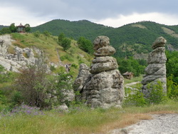 Visa Bulgārija nesastāv tikai no kaļķakmeņiem. ZR daļā ir daudz smilšakmeņu. Tie nešķīst ūdenī, bet erozijai padodas labi. Rezultātā izveidojas visneiedomājamāko formu klintis. Īpaši pie pilsētiņas Belogradčik. Dažviet klinšu stabi ir tik tuvu viens otram, ka senatnē atjautīgākie tos izmantojuši kā dabiskus nocietinājumus. Mūsu bāleliņi tikmēr nesa un bēra pilskalnus ar cepurēm. Te nu darbs fotoaparātam un šoreiz bildes izdodas.