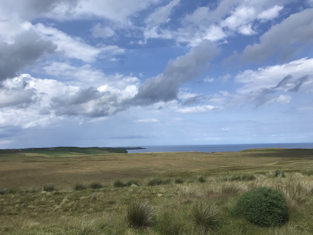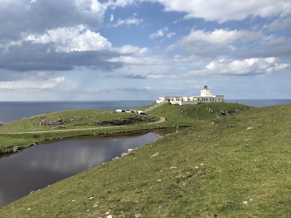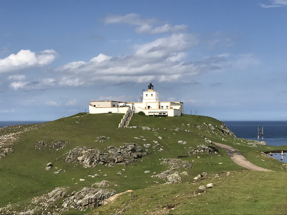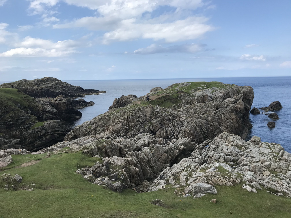 Lielo zemi atkal sasniedzam Skrapsterā, kuras straujā attīstība sākusies 1841.gadā, kad karalienes Viktorijas tālredzība lika te padziļināt ostu. Tad arī Lielbritānijas galējā ziemeļu punktā sākās ekonomiskā rosība, kas kluso zvejnieku miestu pārvērta pieklājīgā pilsētā. Bet tas arī viss, ko uzzinām un redzam, jo brauciena prioritāte ir daba un ainava, vēlreiz daba un ainava! Ceļš pa Skotijas ziemeļu piekrasti no Skrapsteras līdz Ullapūlai sniedz visu, ko sirds kāro kalnus, okeānu, klintis, pludmales, kas vēlāk pāriet kalnu ezeru simfonijā un arvien skarbākā, majestātiskā un neapdzīvotā ainavā. Sākotnējā jūsma par ilgi gaidīto peldēšanos kādā īpašā Atlantijas okeāna līča lagūnā, diemžēl, izrādās pārsteidzīga laika apstākļi ir labi, bet mūsu autobusa izmēri nu nekādi neļauj pie šī līcīša piebraukt. Patiesa sāpe, šķiet, jūtama tikai manī, jo citus pelde vēsajā ūdenī nemaz tik ļoti nevilina Taču skatus novērtē visi un nav ļaunuma bez labuma peldes vietā vietējie mums iesaka piebraukt pie kādas nomaļas bākas. Šis negaidītais gājiens izvēršas par neviltotu prieka mirkli ejamais attālums ir naski pievarams visiem, klinšu sienas, pussalas, reljefs ļauj izskraidīties tiem, kam prasās papildus kustības, bāka un daba ap to ir izcili skaistas, debesis rāda brīnišķīgāko kino, kāds ik pa laikam ir repertuārā mākoņi mijas ar sauli tādā ātrumā, it kā Visuma spēki šobrīd rotaļātos tikai šeit un nekur citur. Esam vienīgā grupa, un pat mēs pamanāmies izklīst uz visām pusēm tā, lai katrs savā klints galā ievilktu sevī suģestējošo dabas spēku, citu netraucēts. Kāds pat ir saskatījis vaļu dejas okeānā, cits tvēries pie putniņiem, vēl kādam bākas romantika tuvāka, bet vilties te vienkārši nav iespējams. Lai arī ūdens skalojas peldei neaizsniedzams, arī es esmu gandarīta. Te ir īstā, ne tūristu Skotija, kur putniņi vēl ir savās vietās. Brīnišķīgi! Saldajā ēdienā vēl saņemam spalvainās skotu govis, kas izgūlušās ceļam tik tuvu, ka uz maiņām tās fotografējam no autobusa sliekšņa. Viņas tikai slinki gremo un skatās uz mums ar īdzīgu un rimtu vienaldzību. Tad arī uzsmidzina, lai turpmākajā ceļā vilktu uz miegu, bet ainavas burvība aiz loga neļautu acis vērt ciet. Pēc programmas vēl izstaigājam Smoo alas ap kādas upes izgrauztu kanjonu un braucam uz naktsmītni vēl ilgi, skaisti un nedaudz mežonīgi.