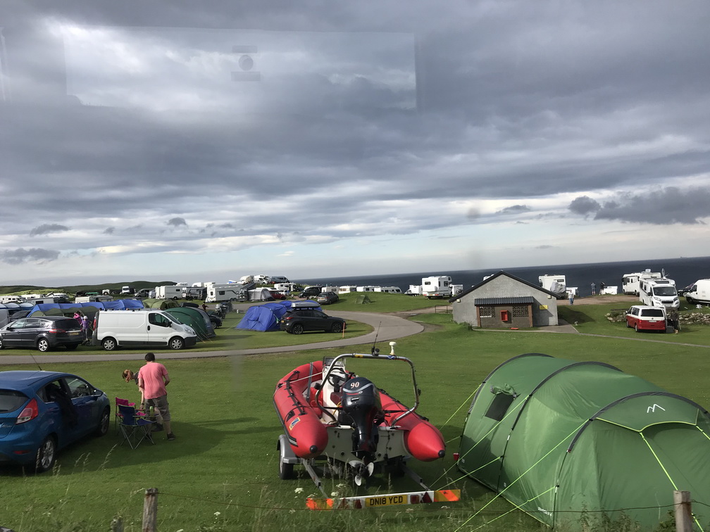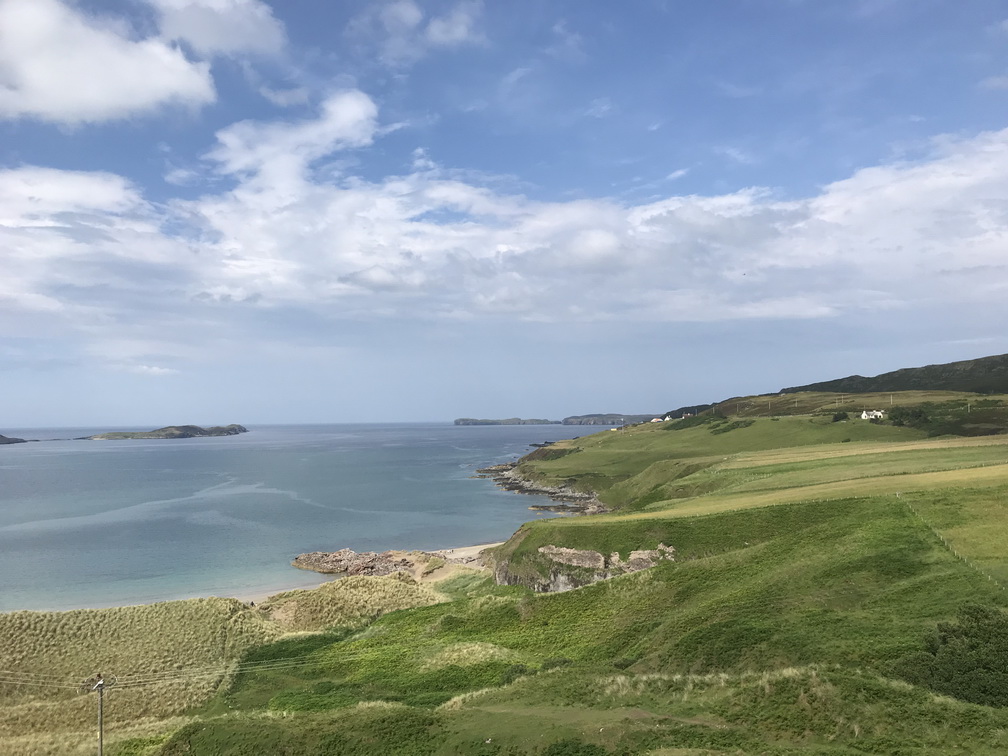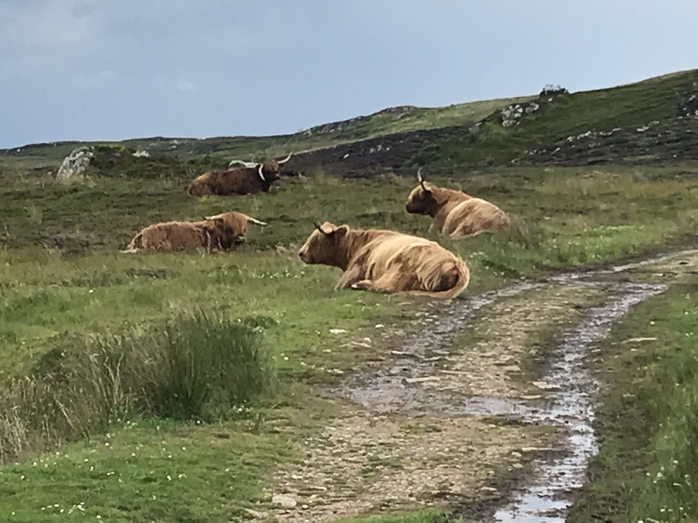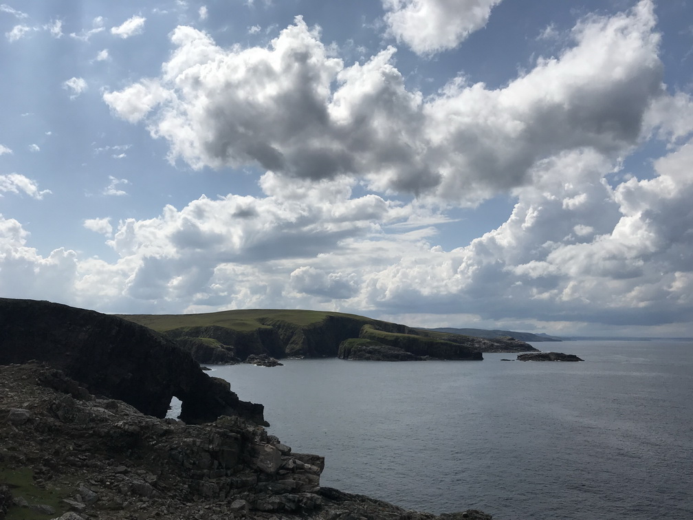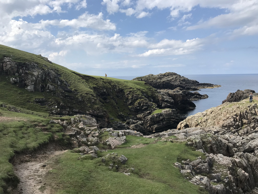 Lielo zemi atkal sasniedzam Skrapsterā, kuras straujā attīstība sākusies 1841.gadā, kad karalienes Viktorijas tālredzība lika te padziļināt ostu. Tad arī Lielbritānijas galējā ziemeļu punktā sākās ekonomiskā rosība, kas kluso zvejnieku miestu pārvērta pieklājīgā pilsētā. Bet tas arī viss, ko uzzinām un redzam, jo brauciena prioritāte ir daba un ainava, vēlreiz daba un ainava! Ceļš pa Skotijas ziemeļu piekrasti no Skrapsteras līdz Ullapūlai sniedz visu, ko sirds kāro kalnus, okeānu, klintis, pludmales, kas vēlāk pāriet kalnu ezeru simfonijā un arvien skarbākā, majestātiskā un neapdzīvotā ainavā. Sākotnējā jūsma par ilgi gaidīto peldēšanos kādā īpašā Atlantijas okeāna līča lagūnā, diemžēl, izrādās pārsteidzīga laika apstākļi ir labi, bet mūsu autobusa izmēri nu nekādi neļauj pie šī līcīša piebraukt. Patiesa sāpe, šķiet, jūtama tikai manī, jo citus pelde vēsajā ūdenī nemaz tik ļoti nevilina Taču skatus novērtē visi un nav ļaunuma bez labuma peldes vietā vietējie mums iesaka piebraukt pie kādas nomaļas bākas. Šis negaidītais gājiens izvēršas par neviltotu prieka mirkli ejamais attālums ir naski pievarams visiem, klinšu sienas, pussalas, reljefs ļauj izskraidīties tiem, kam prasās papildus kustības, bāka un daba ap to ir izcili skaistas, debesis rāda brīnišķīgāko kino, kāds ik pa laikam ir repertuārā mākoņi mijas ar sauli tādā ātrumā, it kā Visuma spēki šobrīd rotaļātos tikai šeit un nekur citur. Esam vienīgā grupa, un pat mēs pamanāmies izklīst uz visām pusēm tā, lai katrs savā klints galā ievilktu sevī suģestējošo dabas spēku, citu netraucēts. Kāds pat ir saskatījis vaļu dejas okeānā, cits tvēries pie putniņiem, vēl kādam bākas romantika tuvāka, bet vilties te vienkārši nav iespējams. Lai arī ūdens skalojas peldei neaizsniedzams, arī es esmu gandarīta. Te ir īstā, ne tūristu Skotija, kur putniņi vēl ir savās vietās. Brīnišķīgi! Saldajā ēdienā vēl saņemam spalvainās skotu govis, kas izgūlušās ceļam tik tuvu, ka uz maiņām tās fotografējam no autobusa sliekšņa. Viņas tikai slinki gremo un skatās uz mums ar īdzīgu un rimtu vienaldzību. Tad arī uzsmidzina, lai turpmākajā ceļā vilktu uz miegu, bet ainavas burvība aiz loga neļautu acis vērt ciet. Pēc programmas vēl izstaigājam Smoo alas ap kādas upes izgrauztu kanjonu un braucam uz naktsmītni vēl ilgi, skaisti un nedaudz mežonīgi.