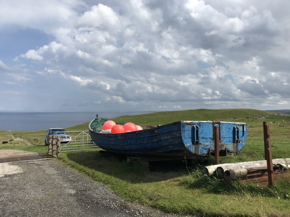 Bet es saldsērīgi noskatos uz krastu, kur māju silueti līdzinās saplacinātām pudelēm, mazie pagalmiņi ir ciemiņiem draudzīgi, bet dzīvžogos dāsni izgāžas milzīgi fuksiju krūmi. Jā, tas, ko mēs audzējam podiņos, te lekni zaļo kā milzu krūmi, kurus vēl atļaujas cirpt Tādu dienvidniecisku bagātību šeit negaidīju, bet, pateicoties siltajai Golfa straumei, košuma te ir pārpārēm. Salās lauki apstrādāti kā paklāji, dzīvnieki kā ornaments, viss kā uz delnas līdz apvārsnim, vējam ir, kur ieskrieties, ģeneratori ar diviem un trīs spārniem, aitas dažādas kā cūkas, kā zaķi, baltas, pelēkas, ar melnām galvām, lielas, mazas, visādas Kad vakarā ar autobusu braucam garām zemnieku mājām, ļaudis sēž vakara piesaulē, gan vienkārši, gan iedzerot, un visi draudzīgi māj ar roku priecīgi un pašsaprotami. Tagad tieši tāpat pamāju Orknejām un tās neuzkrītošajai viesmīlībai. Palieciet sveiki!
