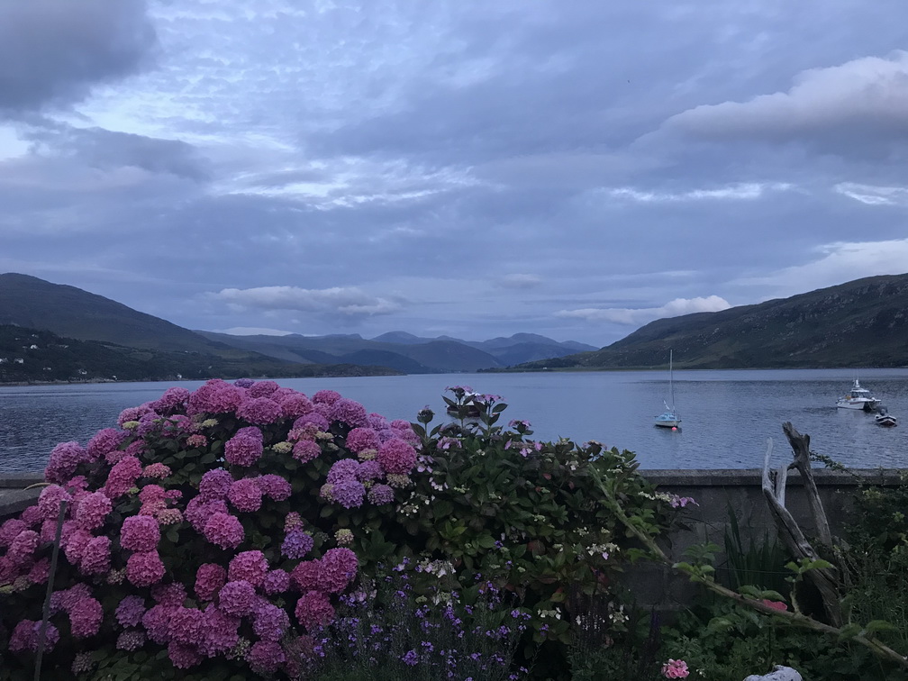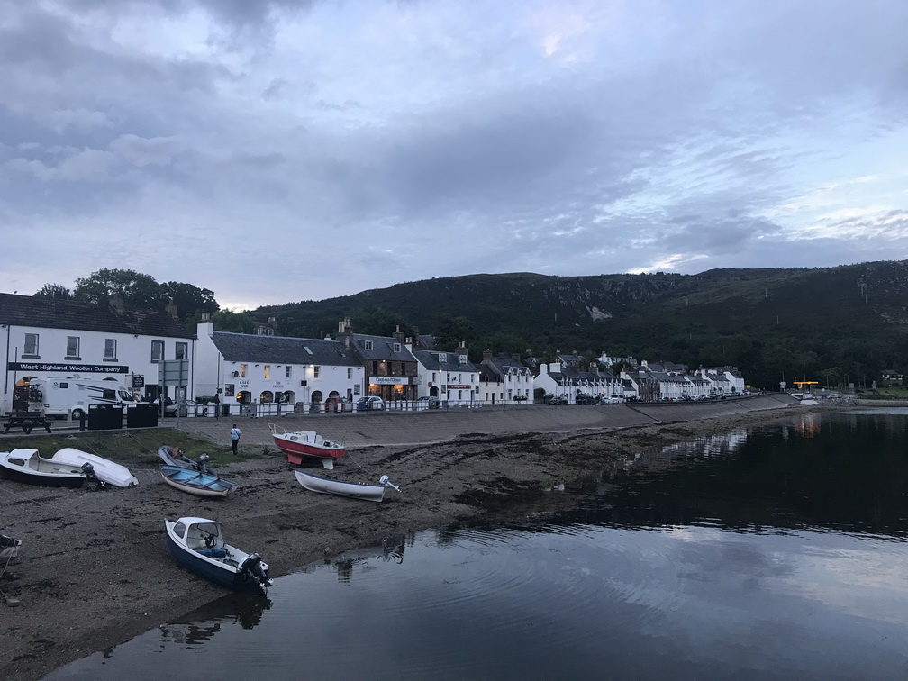 Ullapūlā ir pasūtītas vakariņas, viesnīca atrodas pašā mazpilsētiņas vidū pie brīnišķīga ezera, kas burtiski izsauc vakara pastaigā. Nedaudzie krodziņi ir pārpildīti un jautri, suvenīru veikali atvērti ilgi, ostas malu apsēduši makšķernieki, bet mēs ar Sandru garajā pastaigā elpojam brīnišķo ziedu smaržu, līdz labsajūtai uzbrūk līdz šim ceļojumā nesastaptie knišļi. Pēkšņi tie mūs apsēž ar tādu sparu, ka prātīgāk ir likties gultā. Ar labu nakti, Skotijas kalniešu zeme!
