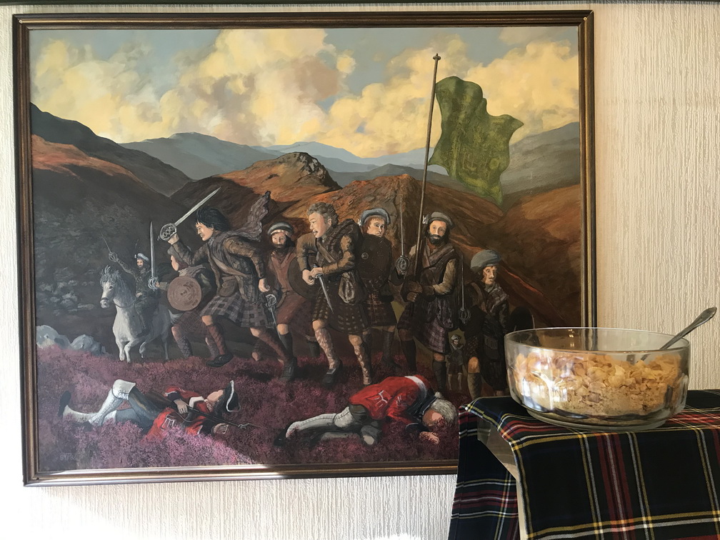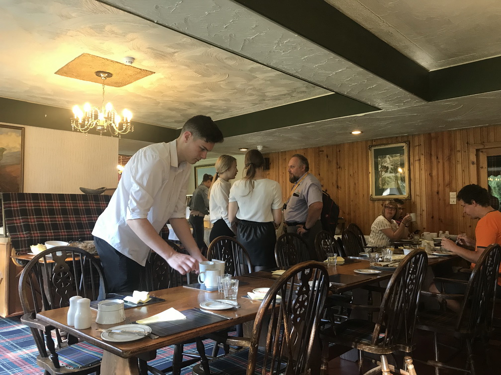 Viesnīca ir ar senatnes dvesmu un smaku, te esot jāuzmanās no tvaikiem caur atvērtas vannas istabas durvīm, jo garaiņi iedarbinot pārlieku jūtīgos dūmu detektorus. Interjerā gar acīm ņirb dažādas rūtis, klanu simbolika tiek mīdīta uz trepēm, izdeldēta dīvānos, dvieļos un grīdas celiņos. Rūtis ir visur, bet telpas plašākas nepadara viss te diezgan pašaurs. Un, pat ja tā nebūtu, brīvais vakars liek doties pastaigā. Te ir reljefs, ir ezera tuvums būs labi, iedrošinu sevi, kam Nesija interesē maz, bet vietējo kolorītu gribas vienmēr.