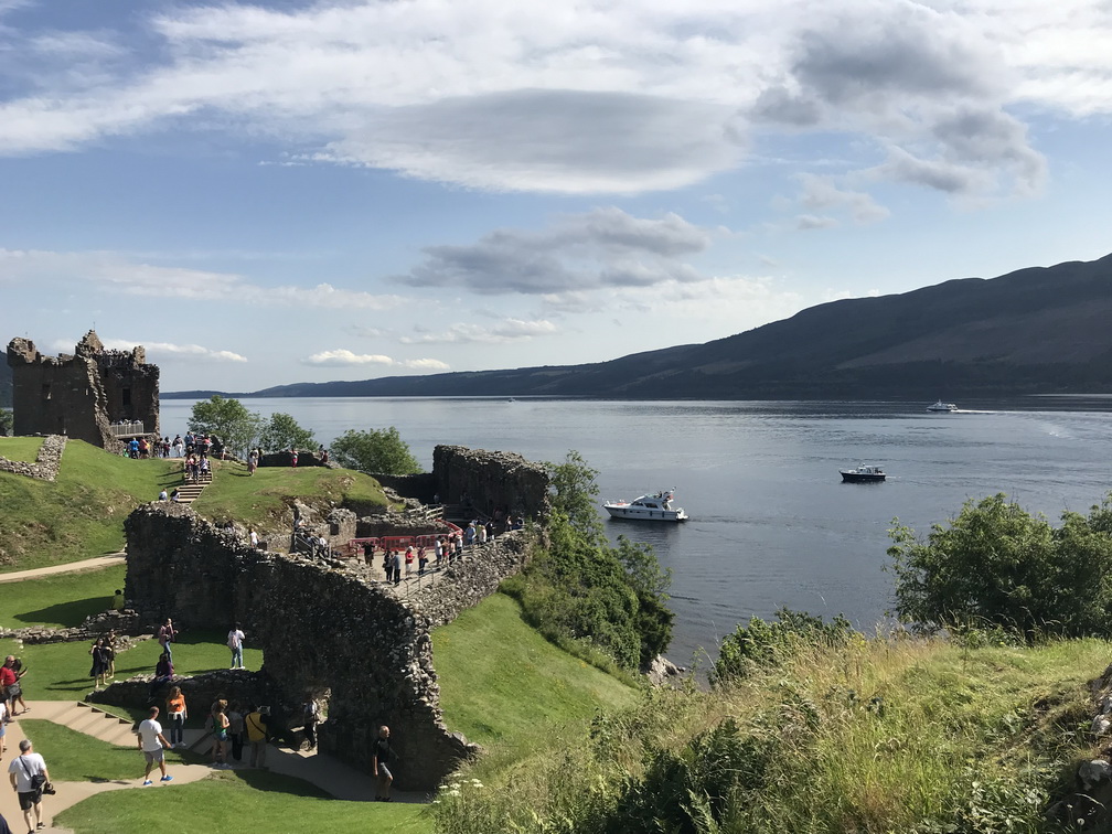 Vēl vairāk pēc tiem sailgojos šodien, kad, brokastis paēduši, dodamies ceļā. Pirmā pietura ir tepat, man līdz tai pietrūcis nepilns kilometrs, bet drūzma jau pirms pilsdrupu atvēršanas ir nedaudz par lielu. Saule ir atgriezusies pie savas svilināšanas misijas, diena solās būt karsta, un strauji tāda arī kļūst. No sākuma pat negribu pilsdrupās iet un līdz ar vēl dažiem vientulības cienītājiem meklējam citu skatu punktu un pieeju pie ezera. Legāli tādas iespējas nav! Drosmīgie un pofigisti rāpjas pāri kādam lopu ganīšanas žogam un pieiet ezeram tuvāk, bet atgriezušies rausta plecu nekā īpaša Ērkvitas līcis, kur Nesija visvairāk redzēta, šobrīd ir padarīts nepieejams. Savukārt senā Urkuhārtas pils, šķiet, tūlīt tiks sabradāta Saņemos un ieeju iekšā, ar šausmām noskatoties, kā no līča puses pils piestātnei tuvojas pieci lielāki un mazāki kruīza kuģi vienlaikus, no kuriem izbirst apbrīnojami steidzīgi un enerģiski ļaudis Šeit drūzma ir katrā pilsdrupu stūrī un pakāpienā, vietumis sajūta kā sabiedriskajā transportā. Urkuhārtas pils tiek dēvēta par Skotijas ikonu, bet šobrīd pati no tā cieš tāda ir maksa par pagājības slavu.