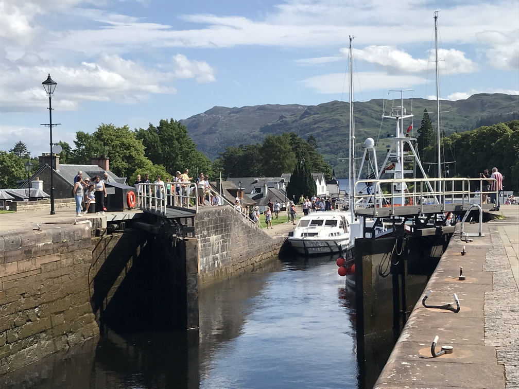 Vēsture ir bagāta, pamācoša un interesanta, bet tās atlieku masveida baudīšana reizēm nogurdina. Šķiet, ka neesmu vienīgā, kas ar atvieglojumu kāpj autobusā un pēc brīža saņem negaidītu dāvanu. Apstāšanās vietā ar neko neizsakošu nosaukumu Fort Augustas izrādās ļoti patīkama un izzinoša, apliecinot, ka tehniskajam progresam savulaik bijusi ļoti cienījama seja. Runa ir par grandiozo projektu, ko no 1803.līdz 1823.gadam realizēja britu inženiera Tomasa Telforda vadībā 97 kilometrus garo Kaledonijas kanālu. Ideja bija vienkārša lai kuģiem nebūtu jābrauc apkārt Skotijas ziemeļu galam pa jūru, tika izlemts savienot neskaitāmos Skotijas lohus jeb ezerus, tādējādi gan saīsinot kuģojamo ceļu, gan ļaujot kuģiem iebraukt vidienē. Projekts tiem laikiem bija grandiozs, to cēla no abām pusēm vienlaicīgi. Gan speciālisti, gan strādnieki bija tikai vietējie, turklāt saņēma cienījamu atalgojumu. To pieprasīja pats Telfords, jo uzskatīja, ka tas nāks par labu reģiona ekonomiskajai izaugsmei un būves kvalitātei. Šī iemesla pēc viņš arī noraidīja piespiedu darba spēka izmantošanu. Kuģu ceļā kopumā ir 29 slūžas, bet šajā rajonā, pie Fort Augustas, to ir veselas 8 un tās sauc par Neptūna kāpnēm. Slūžu augstuma starpība ir 20 metri, tās joprojām darbina mehānismi, kas izgudroti un būvēti pirms nu jau gandrīz diviem simtiem gadu apbrīnojami! Laika posmā no 1995. līdz 2005.ir veikta kanāla tehnisko ierīču restaurācija, taču nekas nav ne mainīts, ne tehniski uzlabots nav bijis vajadzības!