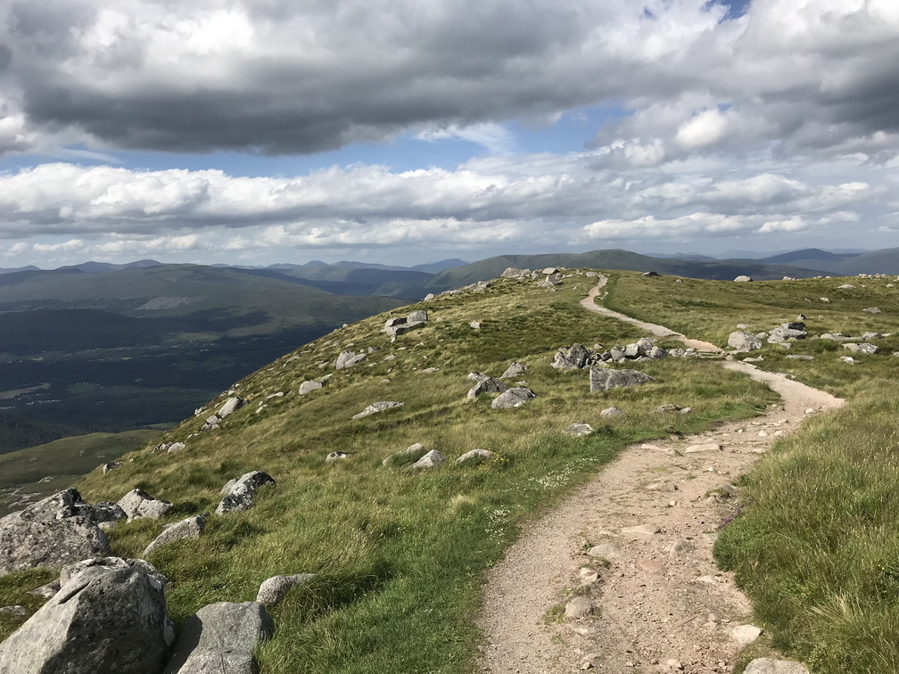 Atceļam uz Aberdīnu mums ir vēl kāda pastaiga dabā kalnu slēpošanas trase, kas vasarā kalpo kā pastaigu vieta kalnos, bet stāvā nogāze piepilda neprātīgo BMX velosipēdistu pārdrošākos sapņus. Tā arī staigājam un meditējam kalnos, kur uz visām pusēm redzami ezeri, starp klintīm vējā purinās spilgti violetie virši, bet pa kādam savu spuraino galvu izslej arī Skotijas simbols dadzis. Par to ir leģenda, kas sasaista visu mūsu braucienu. Viduslaikos, kad vikingi gribēja nokaut guļošu skotu karaspēku, tie centās tumsā tos aplenkt. Lai būtu klusāk, viņi to darīja basām kājām. Tieši tāpēc arī nesanāca kājās dūrās dadži, sākās troksnis, skoti pamodās un bija gatavi cīņai. Dadži viņus bija izglābuši, un no šī laika ir Skotijas nacionālais simbols.