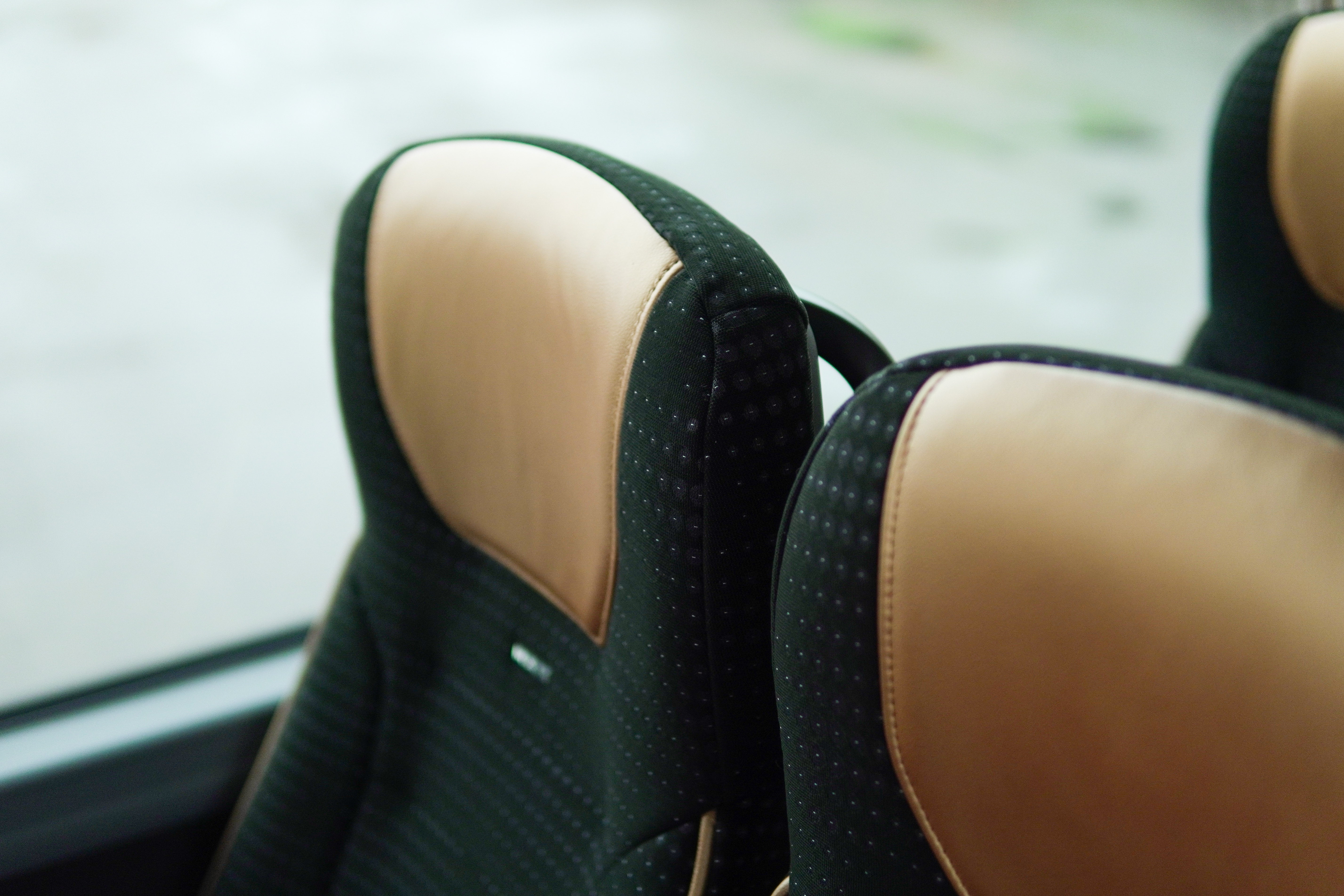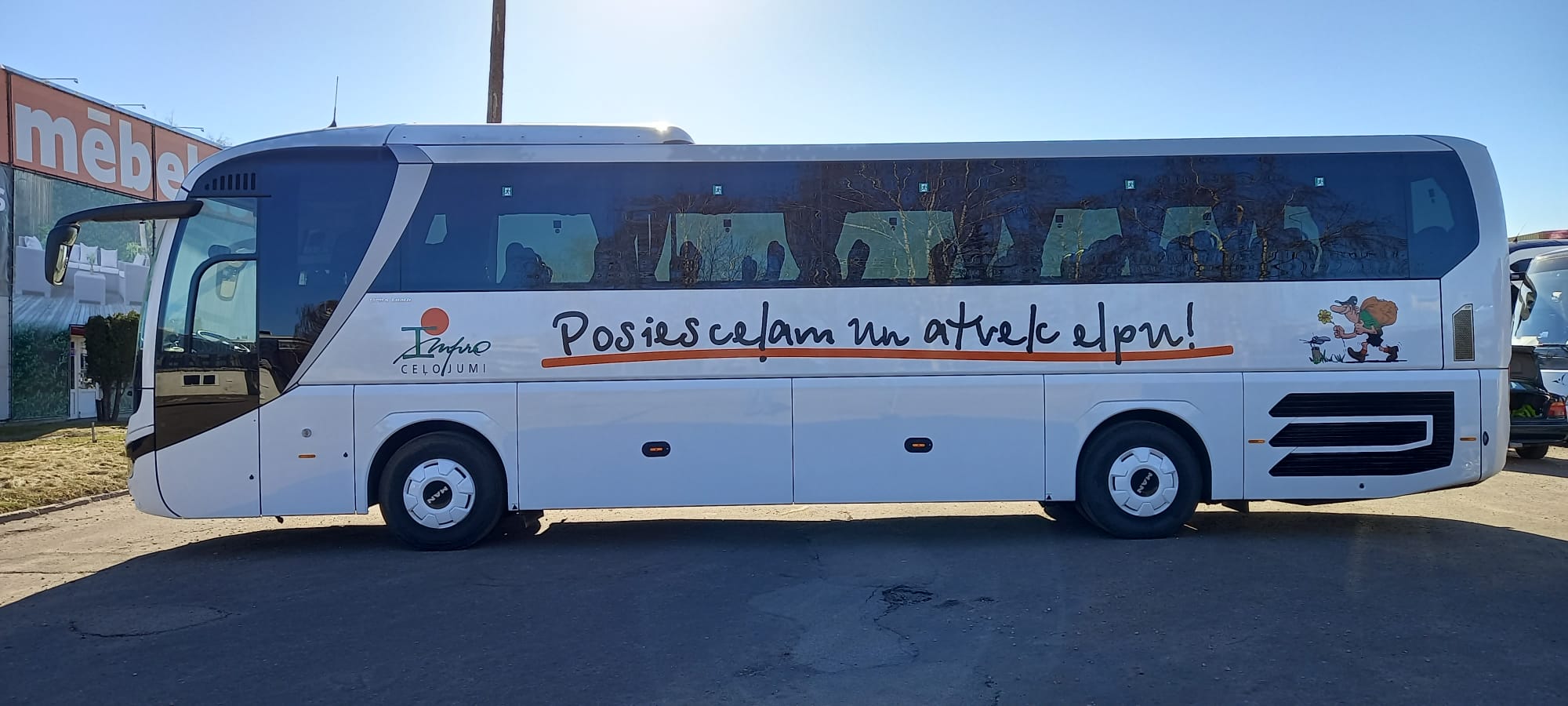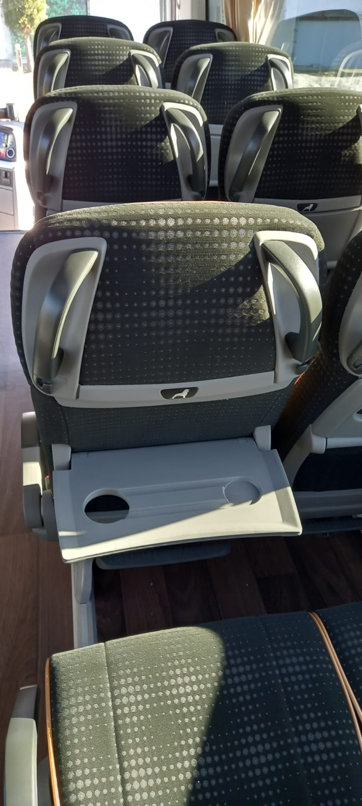 CD atskaņotājs, DVD, videosistēma - 2 monitori, mikrofons, WC, gaisa kondicionieris, USB.