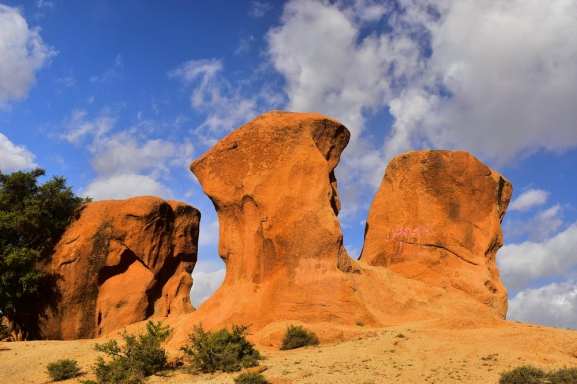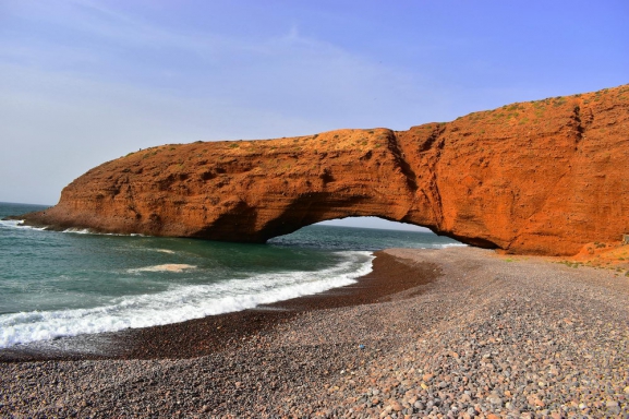 Legzira – visgleznainākā Āfrikas kontinenta piekraste, kur bangojošo okeānu un zeltaino smilšu pludmali ieskauj iesarkanas klintis, bet tām pāri liecas divas masīvas klinšu arkas! Viens no Marokas lielajiem noslēpumiem – sarkanā pilsēta Tafraoute, kas izvietojusies neparasto Anti-Atlasu kalnu ielokā. Ikoniskais Jebel Lekst kalns, neparastās Krāsotās klintis un zaļā Ameln ieleja, kuru izdaiļo baltirozā mandeļkoku ziedi – Marokas sakura. Kalnu pastaiga pa idilisko Paradīzes Ieleju – kristāldzidru baseinu un ūdenskritumu labirintu, kas iespiedies starp smilšakmens klinšu sienām.