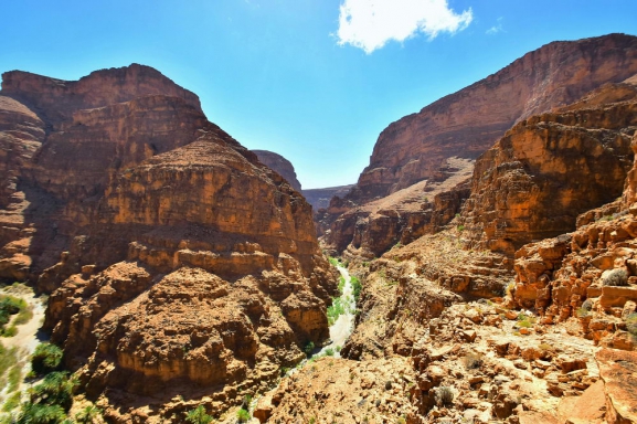 Cascades d’Ouzoud ūdenskritums – viens no Marokas grandiozākajiem skatiem, kur 110 m augstais ūdens aizkars graciozi gāžas skaistajā Wadi el-Abid kanjonā. Dienvidmarokas neatklātā pērle Amtoudi aiza – varens, palmu birzīm klāts kanjons, kura galā atklājas apslēpta oāze ar dzidriem dabas baseiniem, bet klinšu virsotnēs balansē seni berberu cietokšņi. Agadir Id Aissa – lielākais no Amtoudi cietokšņiem, no kura paveras lielisks skats pār kanjonu. Elpu aizraujošais ceļš uz Igmir kanjonu un Igmir ciemu tā pakājē. Pārgājiens Igmir kanjonā – esi viens no pirmajiem ceļotājiem pasaulē, kas atklāj šo iespaidīgo klinšu aizu, kas, metot lielus lokus, kā čūska vijas pie nomaļā, no pasaules atrautā Aoukerda ciema.